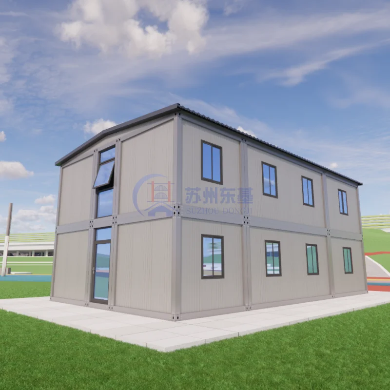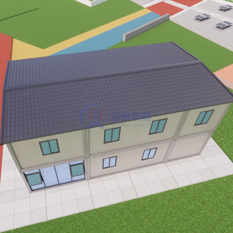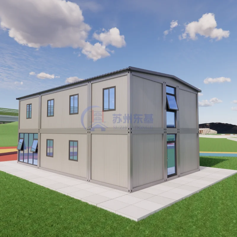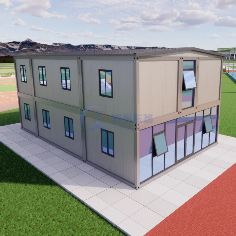 مبنى مدرسي ومكتبي كبير ثنائي الطبقة من الحاويات الجاهزة مع جدار زجاجي، مشروع إنشاء منازل موديولية
